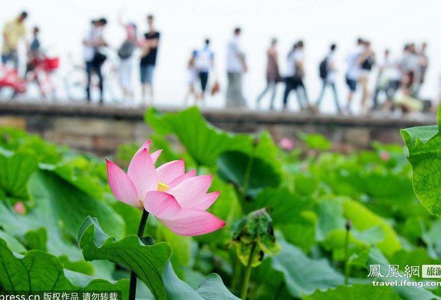 “予独爱莲之出淤泥而不染,濯清涟而不妖,中通外直,不蔓不枝,香远益清,亭亭净植,可远观而不可亵玩焉。”周敦颐笔下的荷花清雅高洁;“荷叶罗裙一色裁,芙蓉向脸两边开。”王昌龄笔下的荷花风情无限;“十里藕花香不断,晚风吹过步粮桥。”李静山笔下夜赏荷花惬意无比。“接天莲叶无穷碧,映日荷花别样红”的季节,让我们追逐荷花的幽香,去领略夏日的清凉,让自己陶醉在别样的荷香季节。 西湖:映日荷花别样红